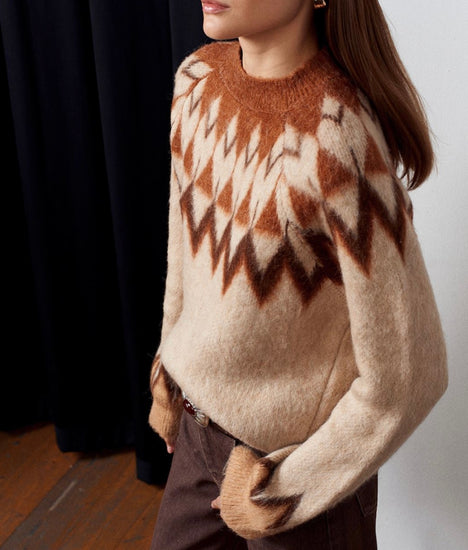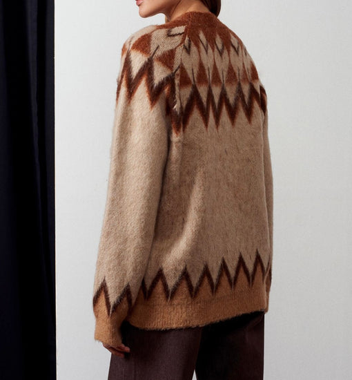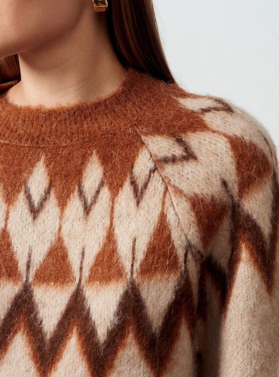 Bisiklet Yaka Desenli Şardonlu Kazak