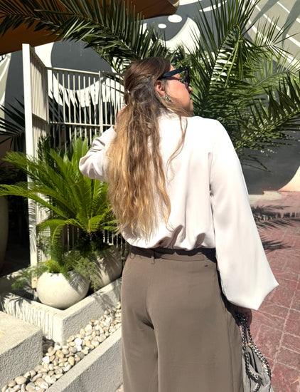 Önden derin V yaka kol da be ve etek ucunda lastik vardır