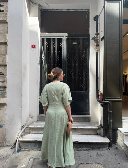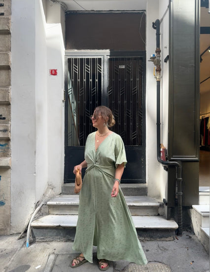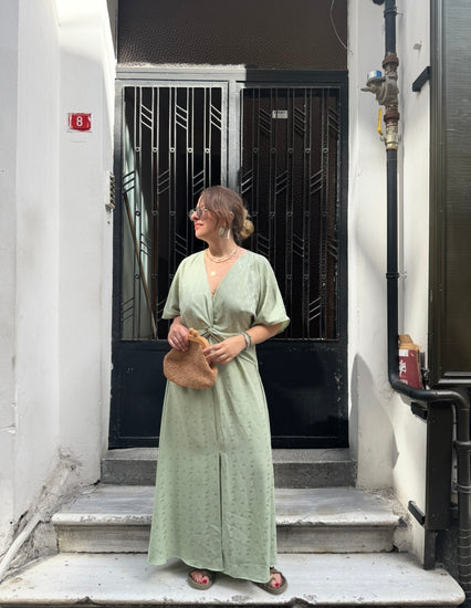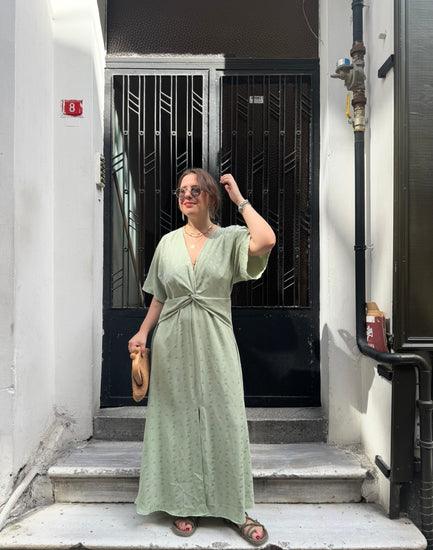 Düğümlü Kısa Kolu Mint Yeşil Elbise