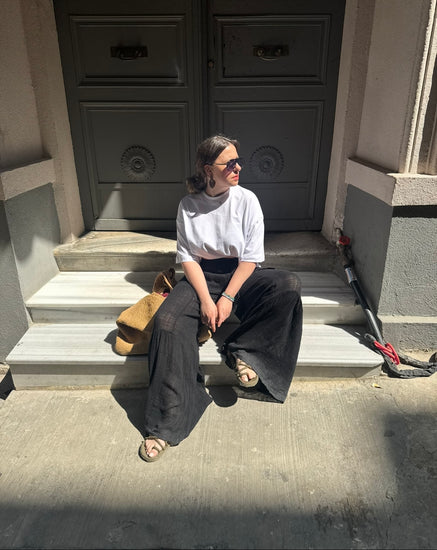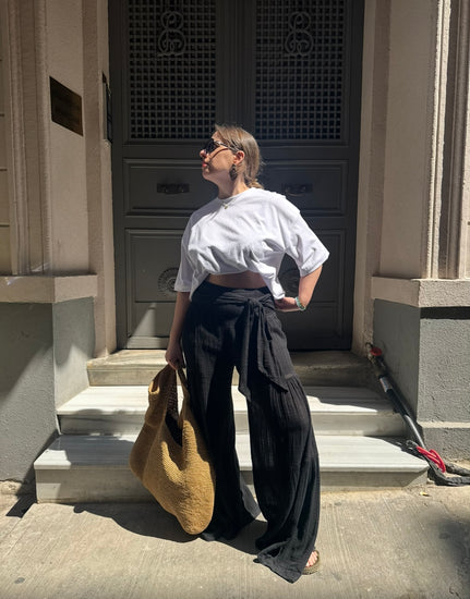 İçinde astarı vardır. Beli lastikli ve bağlamalı pantolon.