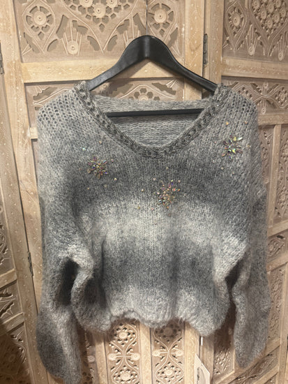 Gri Degrade İthal Taşlı Triko