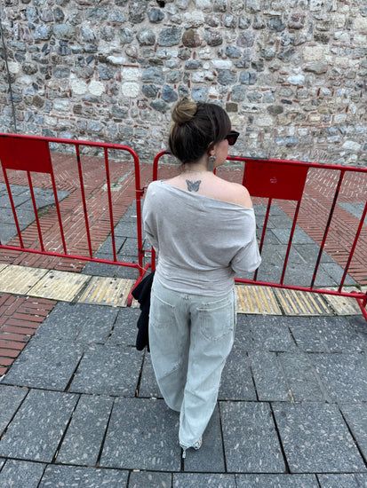 Gri Kayık Yaka Bluz