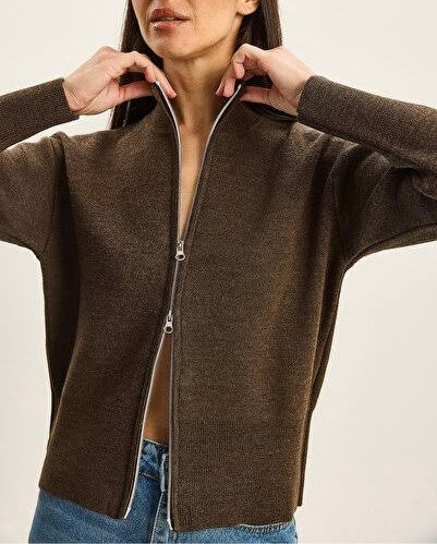 Kahve Melanj Fermuarlı Hırka