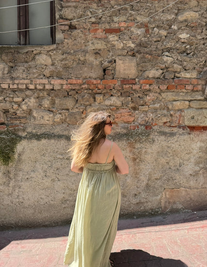 Yandan fermuarı vardır. Askıları ayarlanabiliyor.