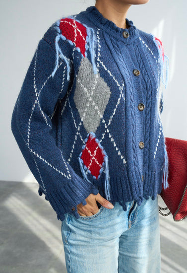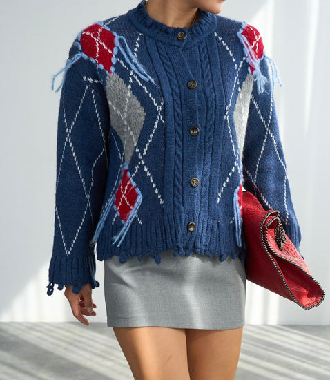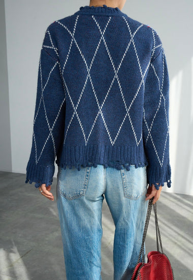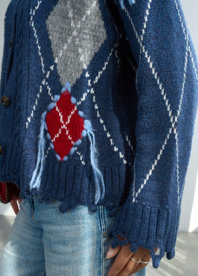 Koyu İndigo Baklava Desenli Hırka