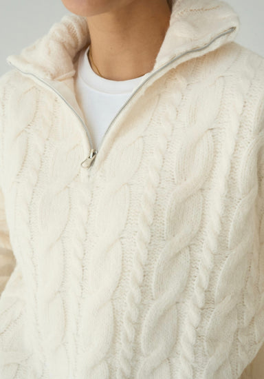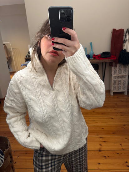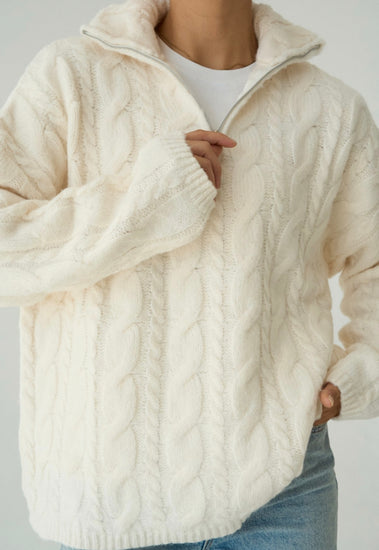 Standart beden önden yarım fermuarlı saç örgülü kazak