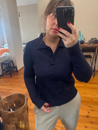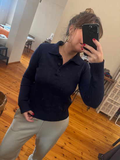 Lacivert Düğmeli Polo Yaka Kazak