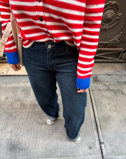 Ara bel boru geniş paça ve paçası kıvrık jean