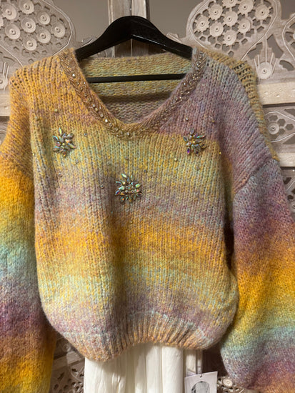 Renkli Degrade İthal Taşlı Triko