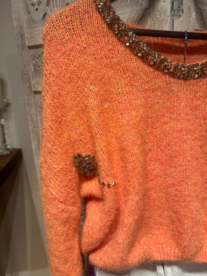 Turuncu İthal Taşlı Triko