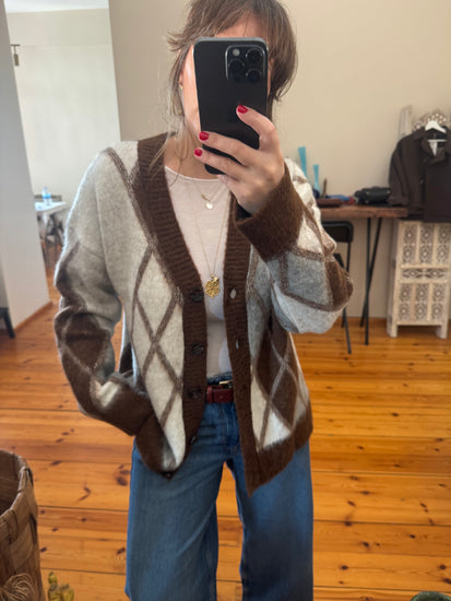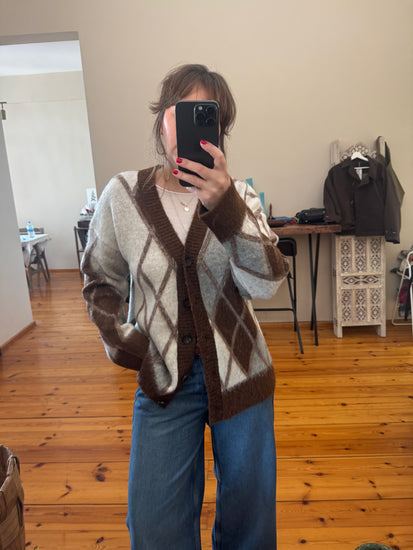 Standart beden ara boy uzunlukta V yaka önden düğmeli hırka