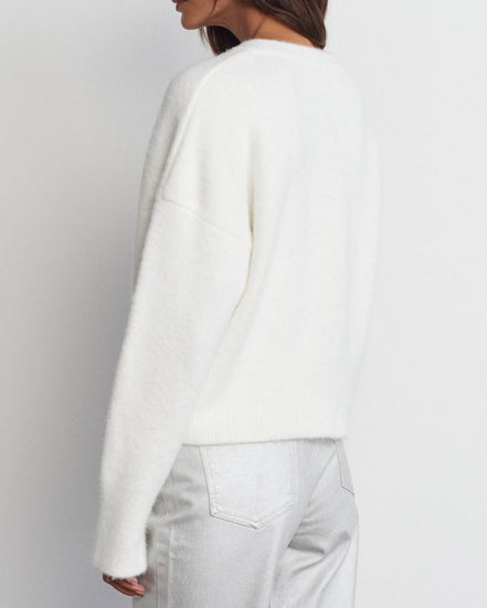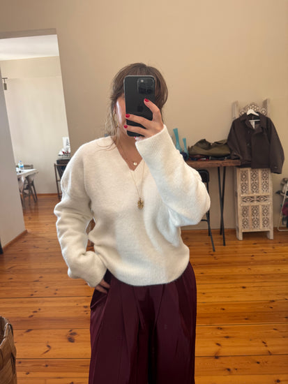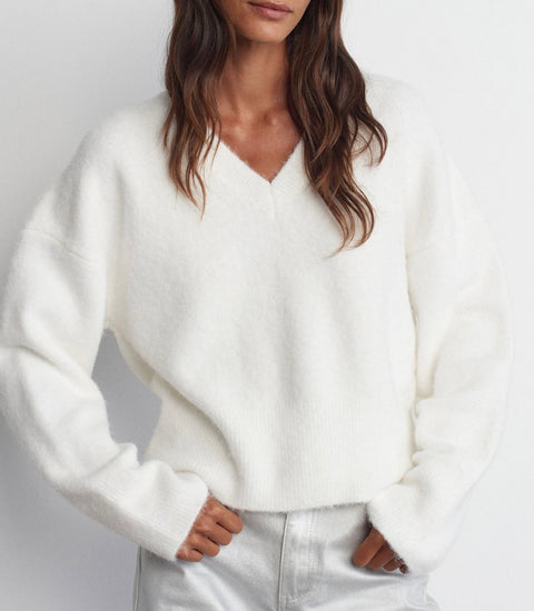 V Yaka Yumuşak Dokulu Ekru Kazak