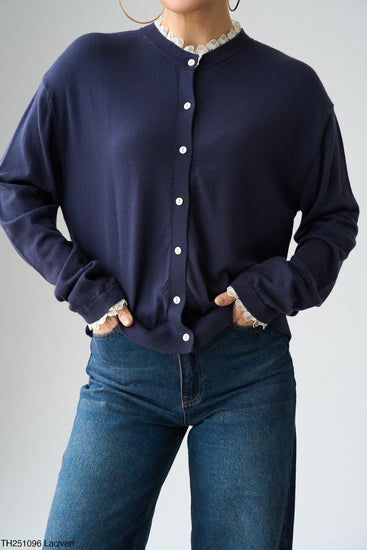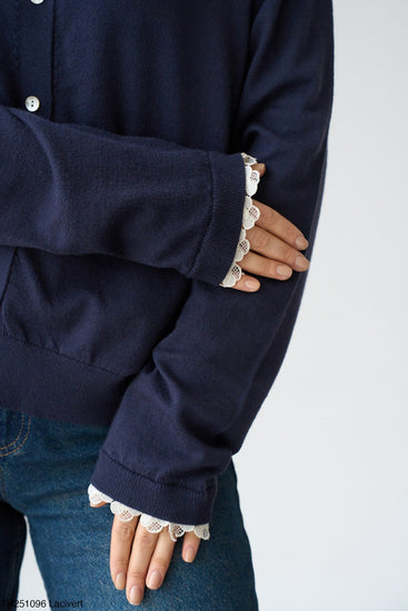 Yakası Ve Kolları Dantel Detaylı Hırka