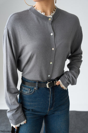 Yakası Ve Kolları Dantelli Hırka