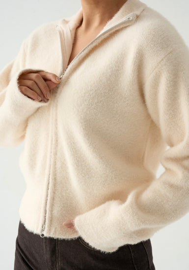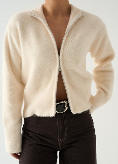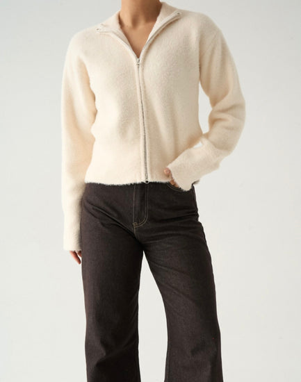 Yumoş Krem Fermuarlı Hırka